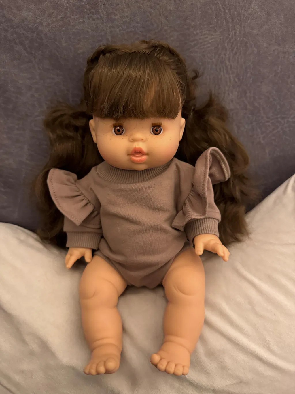 Puppe "Valentine" 34cm mit braunen langen Haaren und Pony