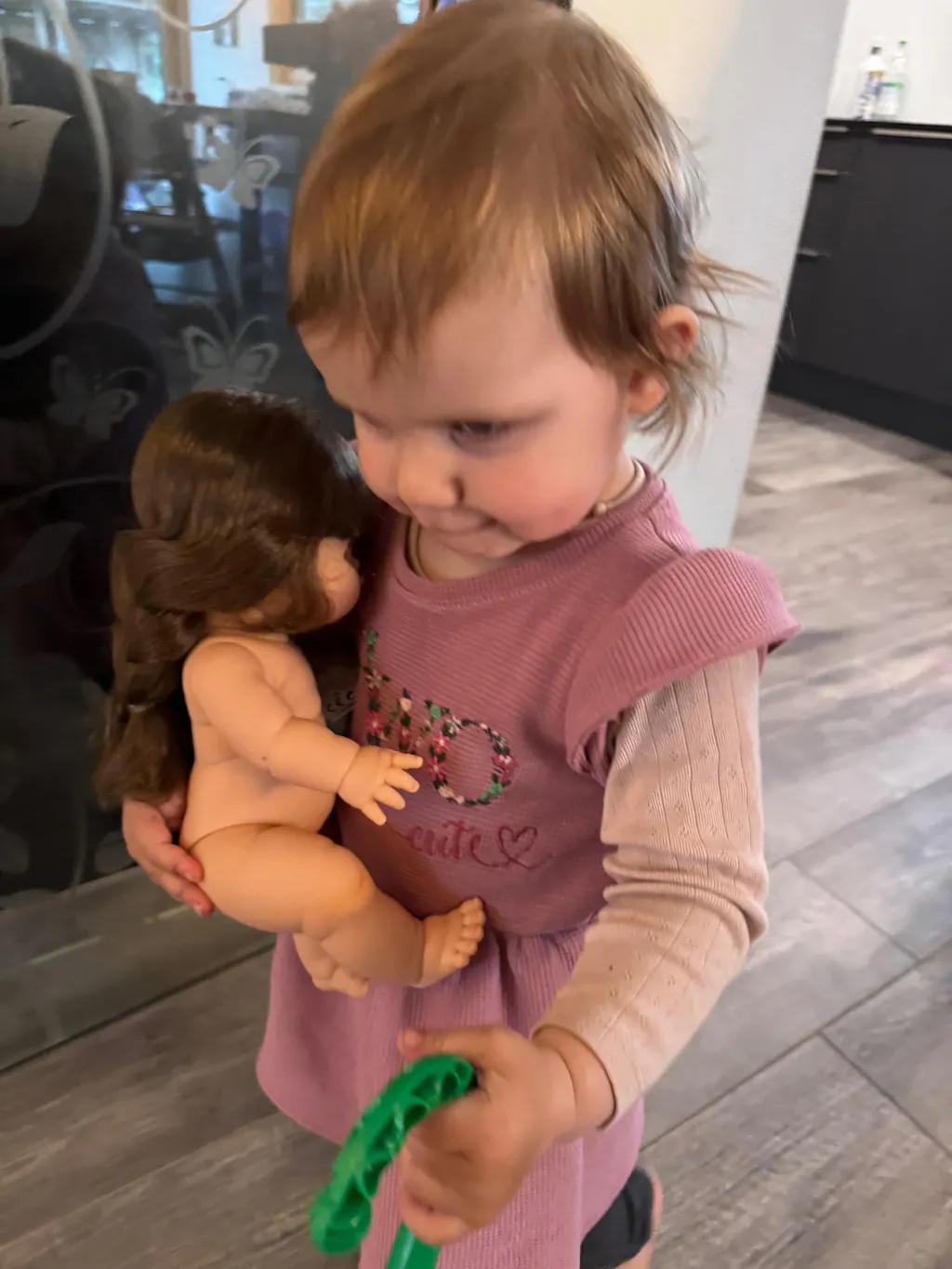 • Die Puppe wird mit einem Flechtzopf geliefert